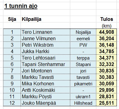 Lisää tuloksia ja kisaraportteja löydät yhdistyksen foorumilta.
